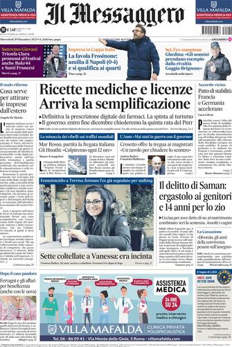 - Apertura con titolo: "Ricette mediche e licenze. Arriva la semplificazione. Definitiva la prescrizione digitale dei farmaci. La spinta al turismo. Il governo: entro fine dicembre chiederemo la quinta rata del Pnrr"