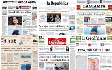 Apertura dei quotidiani sulla situazione a Gaza, il patto di stabilità e il pacchetto di misure per la Semplificazione. Spazio anche al caso dell'abitazione dove vive in ministro Crosetto. Sui quotidiani sportivi la pesante sconfitta del Napoli in Coppa Italia con il Frosinone e la corsa Champions