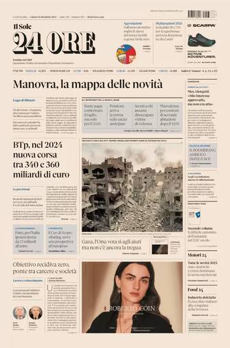 - Apertura con titolo "Manovra, la mappa delle novità". Spazio a "BTp, nel 2024 nuova corsa tra 340 e 360 miliardi di euro"