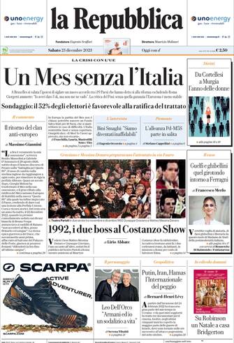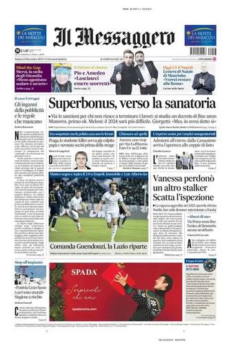 - Apertura con titolo "Giorgetti scuote la maggioranza". Le reazioni dopo il no al Fondo salva-Stati. La Manovra incassa la fiducia del Senato. Superbonus, extra costo di 20 miliardi