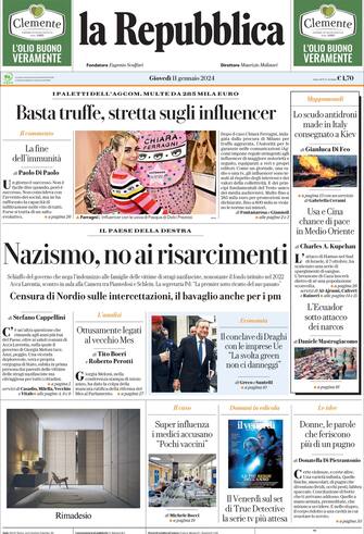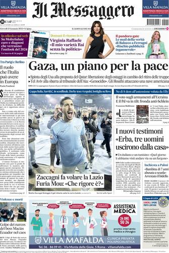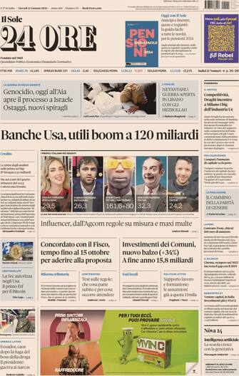 - Apertura con titolo "Banche Usa, utili boom a 120 miliardi". Spazio a "Genocidio, oggi all'Aia apre il processo a Israele. Ostaggi, nuovi spiragli"