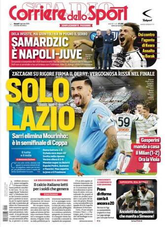 - Apertura con titolo "Solo Lazio". Zaccagni su rigore firma il derby. Maurizio Sarri batte José Mourinho e va in semifinale di Coppa Italia