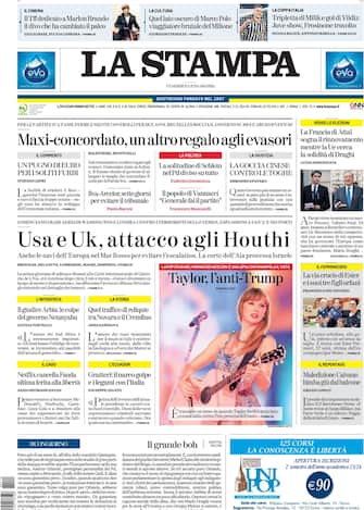 - Apertura con titolo "Usa e Uk, attacco agli Houthi", Anche le navi dell'Europa nel Mar Rosso per evitare l'escalation. La corte dell'Aia processa Israele