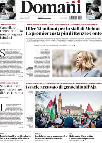 Diverse le aperture sulle prime pagine dei giornali. In primis, le accuse di genocidio, da parte del Sudafrica, a Israele davanti alla Corte di Giustizia dell'Aia. In secondo luogo, nessun accordo tra la maggioranza sulle regionali. Sui quotidiani sportivi si celebra il 4-0 della Juventus al Frosinone: bianconeri in semifinale di Coppa Italia contro la Lazio
