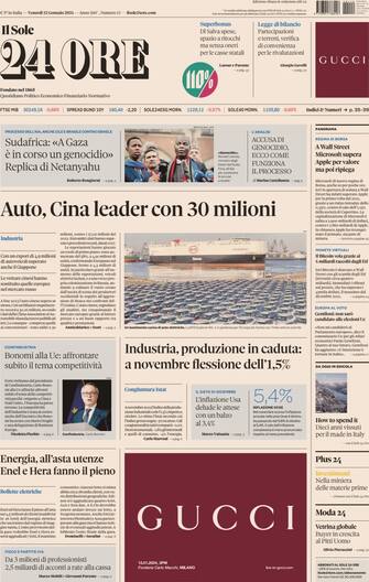 - Apertura con titolo "Auto, Cina leader con 30 milioni". Spazio a "Industria, produzione in caduta: a novembre flessione dell'1,5%