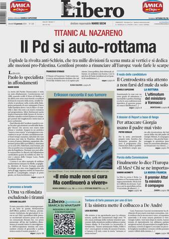 - Apertura con titolo "Il Pd si auto-rottama". Esplode la rivolta anti-Schlein, che tra mille divisioni fa scena muta ai vertici e si dedica alle mozioni pro-Palestina