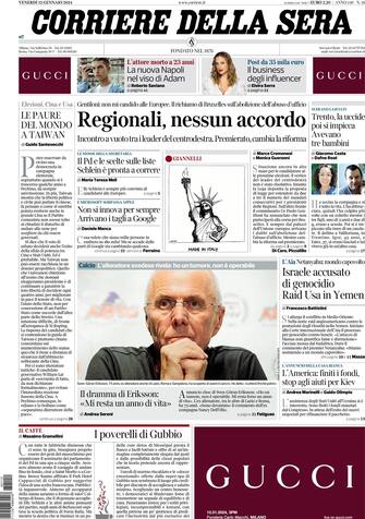 - Apertura con titolo "Regionali, nessun accordo". Incontro a vuoto tra i leader del centrodestra. Premierato, cambia la riforma