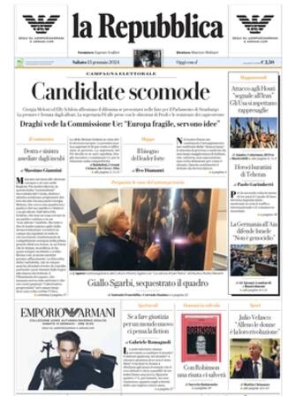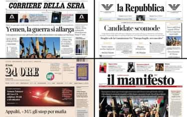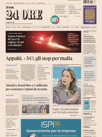 - "Yemen, la guerra si allarga. I raid angloamericani cotro gli Houthi. Giallo sulla richiesta di intervento italiano sul mar Rosso" titola il Corriere della Sera