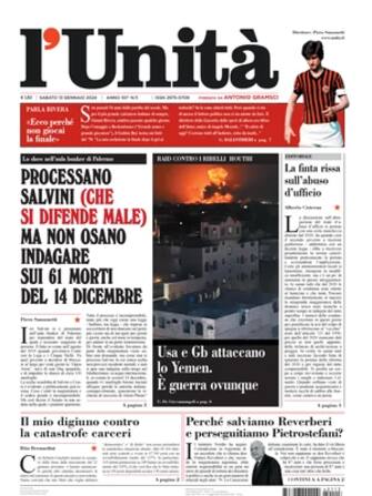 - Apertura con il caso Open Arms per l'Unità: "Processano Salvini (che si difende male) ma non osano indagare sui 61 morti del 14 dicembre"