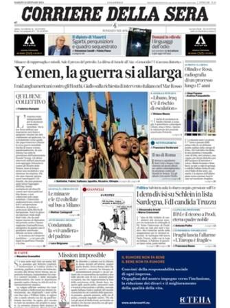 - "Mar Rosso, si muove l'Europa" titola Il Messaggero. In prima pagina anche il processo su Rosa e Olindo: "Erba, reperti finiti nell'inceneritore. Violata l'ordinanza"