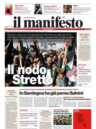 - "Il nodo stretto" è il titolo del Manifesto sul conflitto in yemen. Spazio anche alla politica: "In Sardegna ha già perso Salvini. La Lega cede, Solinas non si arrende"