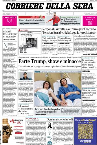 - “Il governo tradisce il sud”è il titolo di apertura di oggi: chiusi uffici e tagliati 20 miliardi. Nella fotografica la ristoratrice di Lodi ritrovata senza vita. La spalla è dedicata alla cronaca internazionale con la campagna per le elezioni Usa e la guerra in Medio Oriente