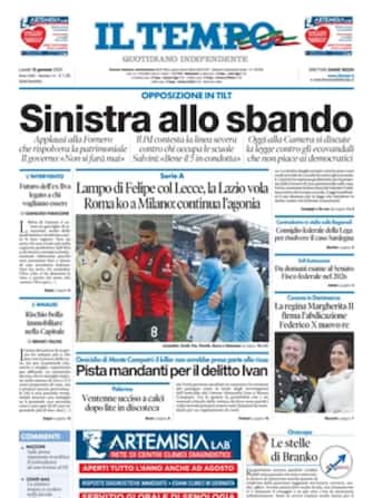 IL TEMPO Oggi parla di “sinistra allo sbando” in riferimento al sostegno della proposta di Elsa Fornero di introdurre la patrimoniale. Nella fotografica il campionato di Serie A con le partite di Lazio e Roma