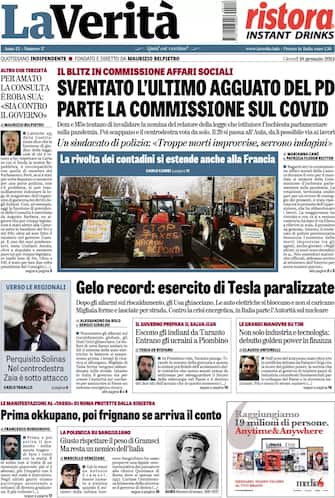 - “Sventato l'ultimo agguato del pd, parte la commissione sul Covid”, è l'apertura di oggi. Nella fotografica la protesta dei contadini in Europa che dalla Germania si allarga alla Francia