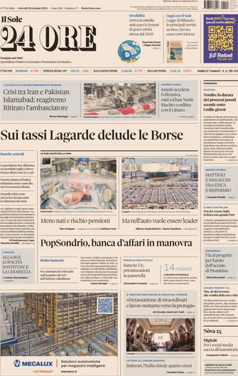 - “Sui tassi Lagarde delude le Borse”, la presidente della Bce ha allontanato un possibile taglio nel breve periodo. Nel taglio alto la crisi tra Pakistan e Iran con l'attacco dei pasdaran di Teheran all'Isis
