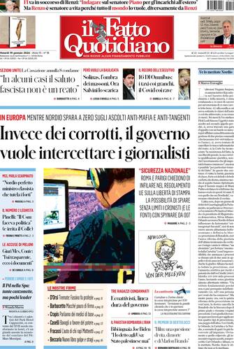 - Apertura con titolo "Invece dei corrotti, il governo vuole intercettare i giornalisti". Mentre Nordio spara a zero sugli ascolti anti-mafia e anti-tangenti