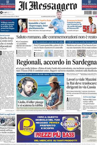 - Apertura con titolo "Regionali, accordo in Sardegna". La Lega molla Solinas: "Prima di tutto l'unità del centrodestra, ma inchieste sconcertanti"