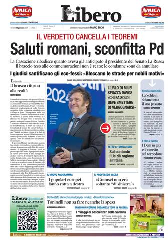 - Apertura con titolo "Saluti romani, sconfitta Pd". La Cassazione ribadisce quanto aveva già anticipato il presidente del Senato La Russa