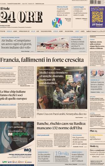 - Apertura con titolo "Francia, fallimenti in forte crescita". Spazio a "Banche, rischio caos su Basilea: mancano 132 norme dell'Eba"