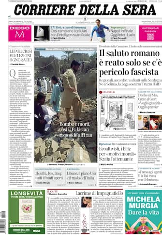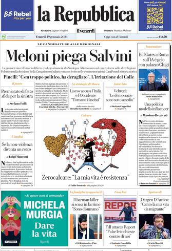 - Apertura con titolo "Meloni piega Salvini". La premier vince il braccio di ferro e la Lega rinuncia alla Sardegna. Ma è scontro nel centrodestra sulle altre Regioni