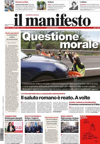 - Apertura con titolo "Questione morale". Condannati per il blocco stradale i militanti bolognesi di Ultima Generazione, solo a sei mesi e con la sospensione della pena perché hanno "agito per motivi di ordine morale e sociale"