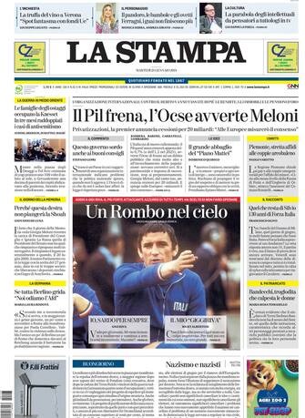 - Apertura con titolo "Il Pil frena, l'Ocse avverte Meloni". Privatizzazione, la premier annuncia cessioni per 20 miliardi