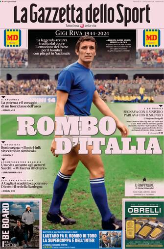 - Apertura con titolo "Ciao Rombo di tuono". Calcio in lutto per la morte di Gigi Riva, eroe dello scudetto del Cagliari e re dei bomber azzurri