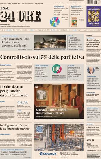 - Apertura con titolo "Controlli solo sul 5% delle partite iva". Spazio a "In Cdm decreto per gli anziani da oltre un miliardo"