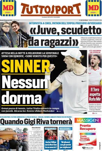 - Apertura con titolo "Sinner, nessun dorma". Attesa nella notte a Melbourne la semifinale show con Djokovic: "Sono venuto per questo"