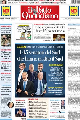 - Apertura con titolo "I 45 senatori del Sud che hanno tradito il Sud". Hanno votato l'autonomia in barba alle promesse