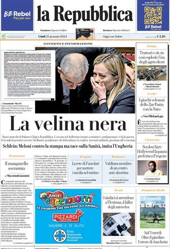 - Apertura con titolo "La velina nera". Nuovi attacchi da Palazzo Chigi a Repubblica. L'accusa del bollettino inviato a ministri e parlamentari: ci fa la guerra