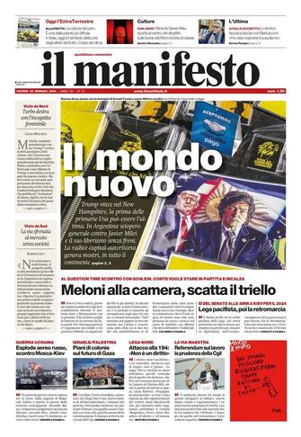 - Apertura con titolo "Il mondo nuovo". Trump vince nel New Hampshire, la prima delle primarie Usa può essere l'ultima. In Argentina sciopero generale contro Javier Milei e il suo liberismo senza freni