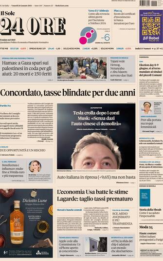- Apertura con titolo "Concordato, tasse blindate per due anni". Spazio a "L'economia Usa batte le stime. Lagarde: taglio tassi prematuro"