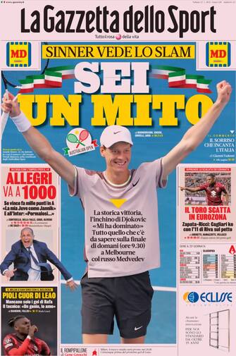 - Apertura con titolo "O Sole Nostro". Batte il più grande: oggi Sinner è il più forte. E' in finale a Melbourne e sfiderà il russo Medvedev
