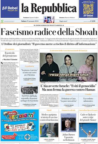 - Apertura con titolo "Fascismo radice della Shoah". Il Presidente della Repubblica commenta il Giorno della Memoria: "Le leggi razziali del regime furono il capitolo iniziale dello sterminio degli ebrei"