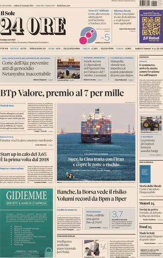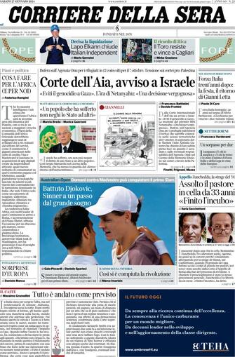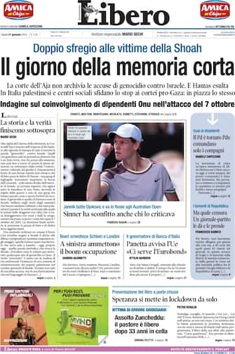 - Apertura con titolo "Corte dell'Aia, avviso a Israele". "Eviti il genocidio a Gaza". L'ira di Netanyahu: "Una decisione vergognosa". Spazio a "Battuto Djokovic: Sinner a un passo dal grande sogno"