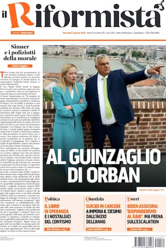 - Apertura con titolo "Al guinzaglio di Orban". Anche sulla prima pagina del Riformista tiene banco il caso di Ilaria Salis