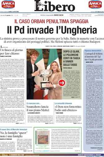 - Apertura con titolo "Il Pd invade l'Ungheria". La sinistra prova a processare il nostro governo per la Salis, finita in manette con l'accusa di aver organizzato dei pestaggi politici. Ma Meloni spiazza tutti e chiama Budapest
