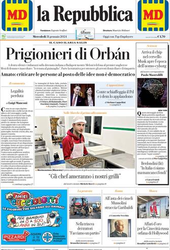 - Apertura con titolo "Prigionieri di Orban". A destra silenzi e imbarazzi sulla detenuta italiana a Budapest mentre Meloni telefona al premier ungherese