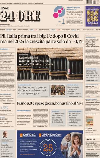 - Apertura con titolo "Pil, Italia prima tra i big Ue dopo il Covid ma nel 2024 la crescita parte solo da +0,1%"