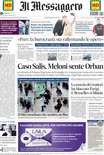 - Apertura con titolo "Salis, Meloni sente Orban". Telefonata di Palazzo Chigi prima del Consiglio Ue: "Garanzie per la docente in arresto"
