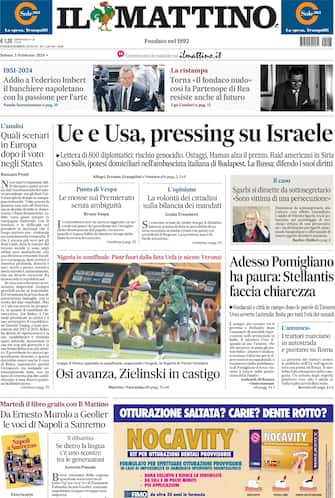 - L'apertura è dedicata alla guerra in Medio Oriente con l'Unione europea e gli Stati Uniti in pressione su Israele per fermare il genocidio. Nel taglio basso lo scontro tra governo e Stellantis sui sussidi