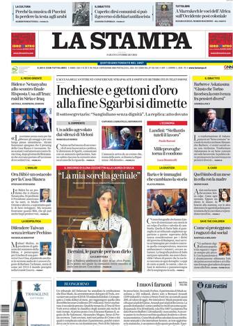- Nel taglio alto le dimissioni di Vittorio Sgarbi. Nel taglio centrale l'allarme terrorismo: “Italia nel mirino di Hamas” e il mossad parla di rischio attentati