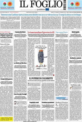 - Apertura con titolo "Le tasse mandano il governo in tilt". Gli agricoltori infuriati per l'Irpef. Le banche minacciate sugli extraprofitti