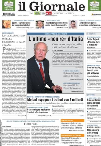 - Apertura con titolo "L'ultimo non re d'Italia". Scomparso a 86 anni: cronaca rosa e sangue blu, addio a Vittorio Emanuele di Savoia