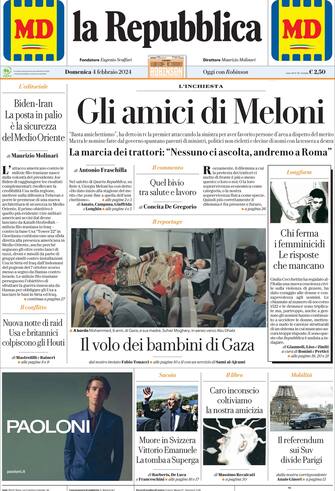 - Apertura con titolo "Gli amici di Meloni". "Basta amichettismo", ha detto in tv la premier attaccando la sinistra per avere favorito persone d'area a dispetto del merito