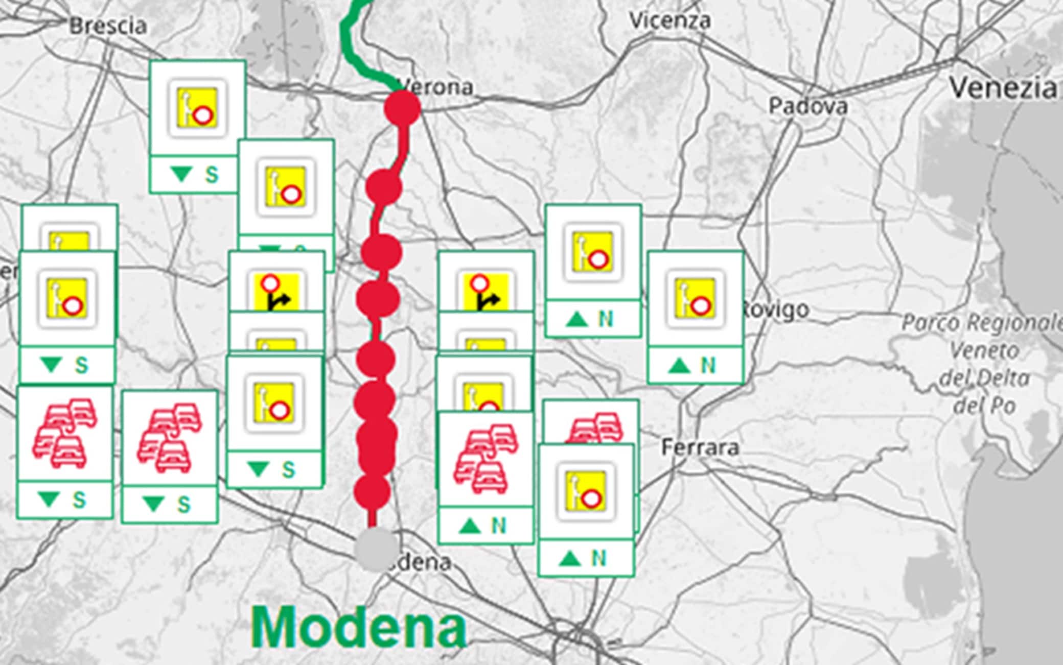 Temporaneamente è stato chiuso anche l'allacciamento con l'A1 Milano-Napoli, nel territorio modenese, in entrambe le direzioni. Autostrade consiglia agli utenti provenienti da Bologna e da Reggio Emilia e diretti verso Verona di uscire a Modena Nord e di percorrere la viabilità ordinaria verso Carpi dove immettersi in A22 verso Verona.