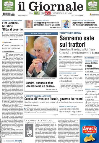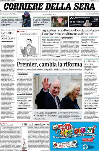 Diverse le aperture sulle prime pagine dei giornali. In primis, cambia la riforma sul premierato. In secondo luogo, si parla dell'accoltellamento di una professoressa a Varese. Spazio anche alla notizia della diagnosi di cancro a re Carlo III. Infine, Amadeus invita gli agricoltori sul palco di Sanremo, ma la Rai frena