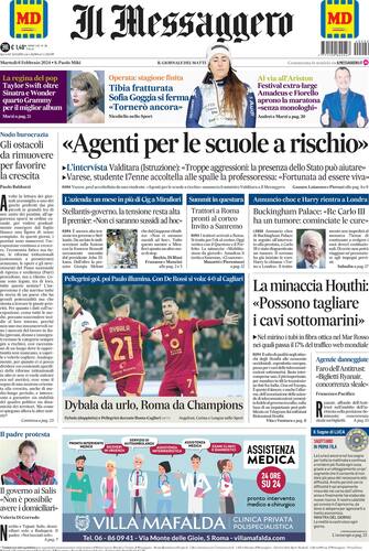 - Apertura con titolo "Agenti per le scuole a rischio". Valditara (Istruzione): "Troppe aggressioni: la presenza dello Stato può aiutare"