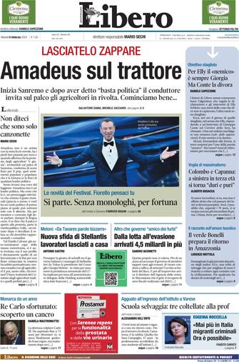 - Apertura con titolo "Sanremo sale sui trattori". Amadeus invita, la Rai frena. Giovedì il presidio arriva a Roma